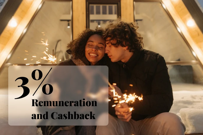 Receive 3% cashback on every purchase, both online and in-store, using your free debit card. Cashback is credited automatically each month, up to €280 per month, during the first six months.
